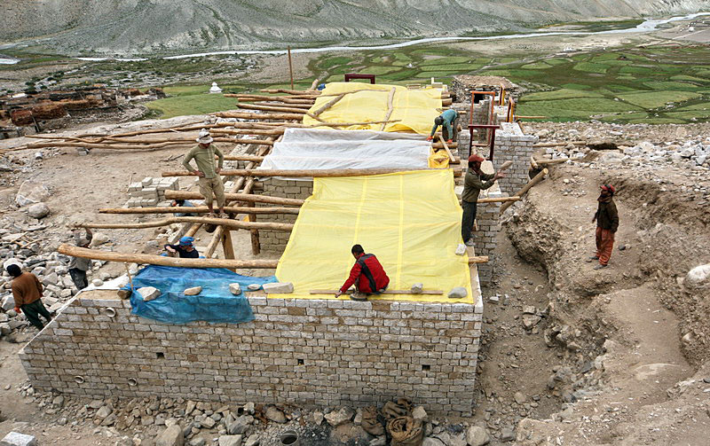 As for the constuction… The brick workers finished making and shaping the bricks and now we have to get the bricks and clay to the construction site. We are facing „the shit problem“ at the moment. In Asia unlike in Europe shit is gold and we need huge amounts of it for the walls of our school. Back in Poland I kept being told that there is too much shit everywhere (bullshit in the newspapers and tv, shity roads, politician’s bullshit) and at the same time there is so little shit in Kargyak that we have to import it from other villages. To sum up we are in deep shit because of lack of shit.